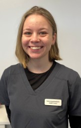 Veterinærsygeplejerske Line-Marie Larsen er ansat ved Dyrlægehuset Videbæk i 2024. Hun er fag-vsp indenfor tandbehandling af kæledyr, og er dagligt med på tandpatienterne i tandrummet, som hun tager sig godt af. Hun er tit den, der udleverer tandpatienterne, efter de har været til tandbehandling og kan svare på diverse spørgsmål, der måtte være i forbindelse med hjemmebehandling efterfølgende.